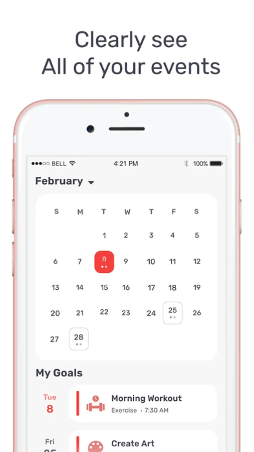Calendar helps you create healthy routines by helping you set goals, tracking your progress, and then motivating you with streaks/chains.