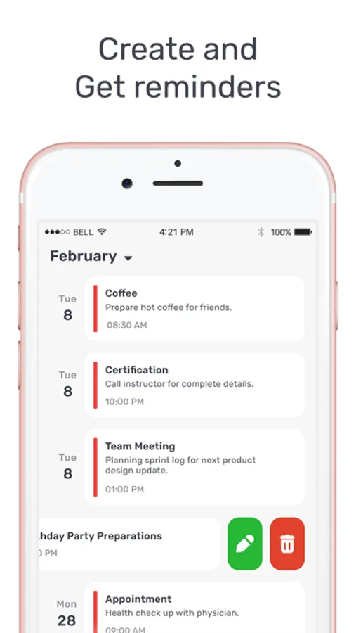 Calendars supports everything you can find in Google Calendar: appointments, reminders and more. Sync is really fast and your information is always up to date.