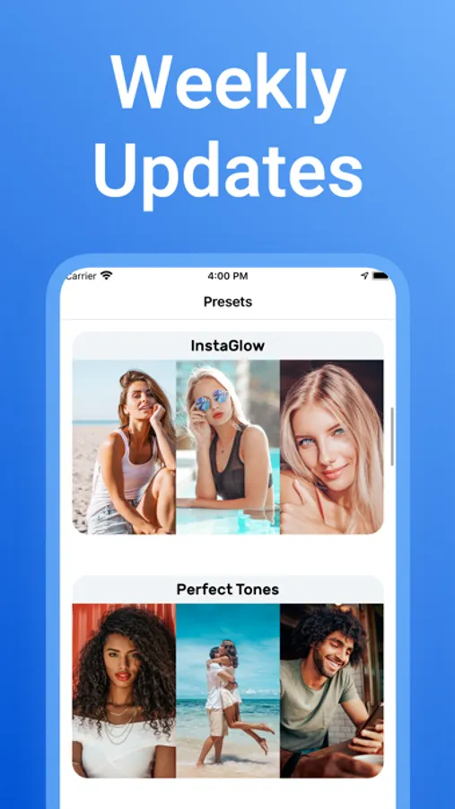 Choose the best style for your Instagram or other social networks and professionally process your photo in a matter of seconds. We are constantly inventing new presets, so daily use our application to stay tuned!