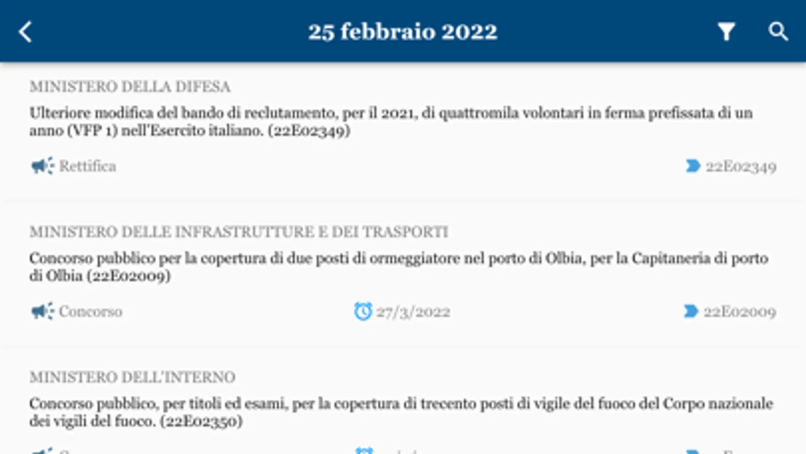 Concorsi Gazzetta è un'app innovativa che consente la consultazione di tutti i concorsi pubblici presenti nella sezione "Concorsi ed Esami" delle varie pubblicazioni della Gazzetta Ufficiale.