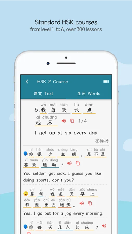 - Standard HSK courses: from HSK level 1 to 6, over 300 lessons.