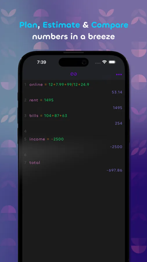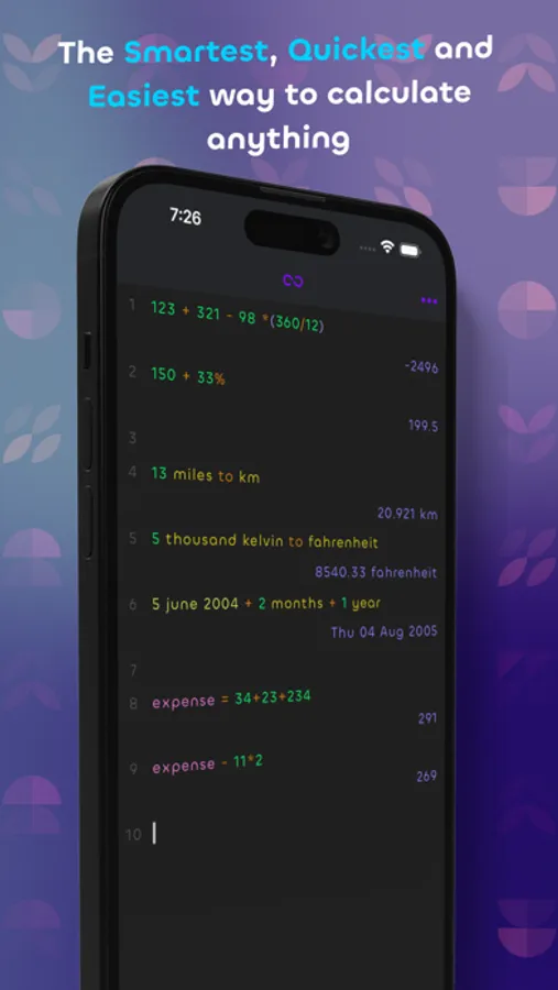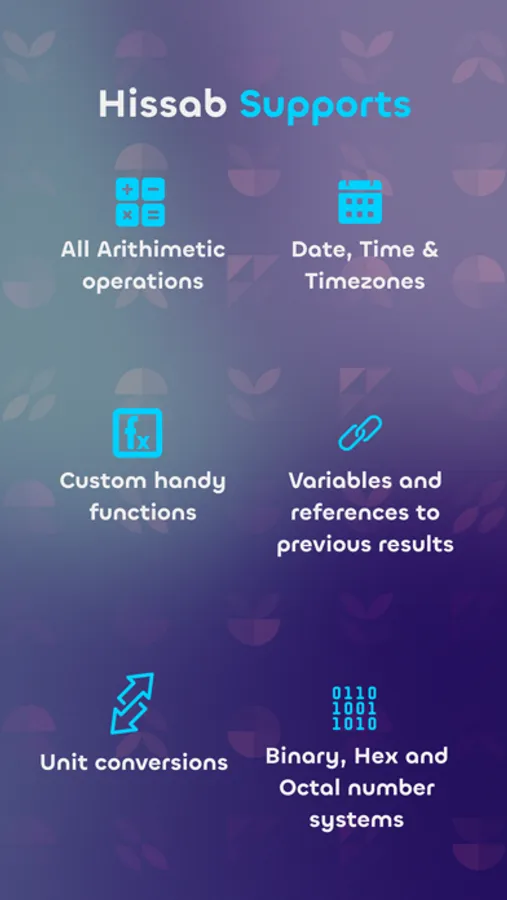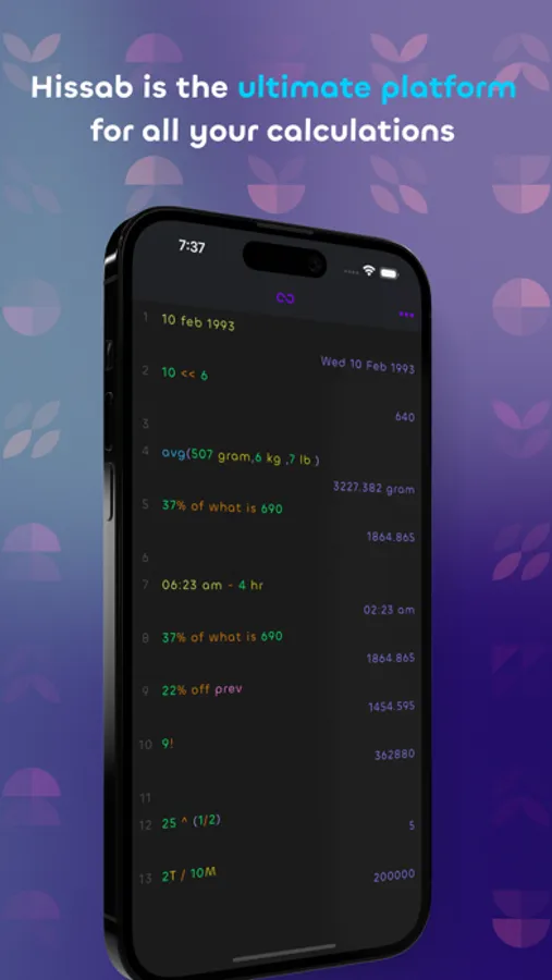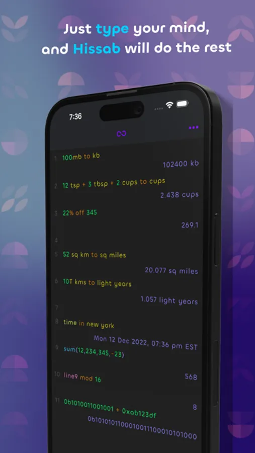 From basic calculations to advanced operations, hissab can do it all. Hissab supports a wide range of operations and calculations. Hissab can compute complex expressions as you type.