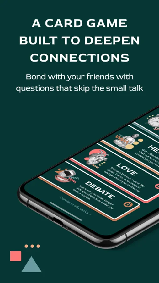 - Choose a pack to play. Themes include: Connect, Reflect, Heal, Love, and Debate