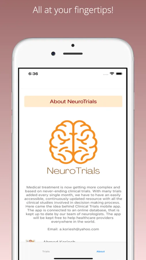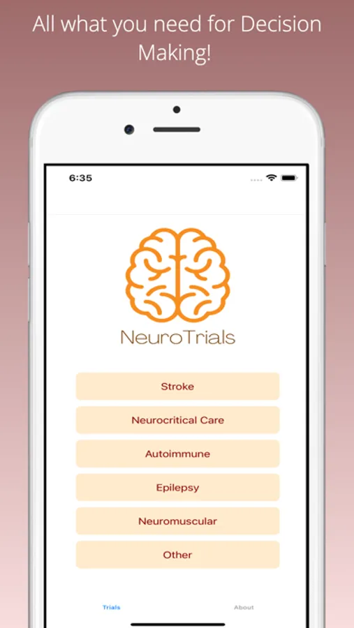 A continuously database of neurology clinical trials to support decision making process. The application is connected to an online database that's updated on the fly continuously.