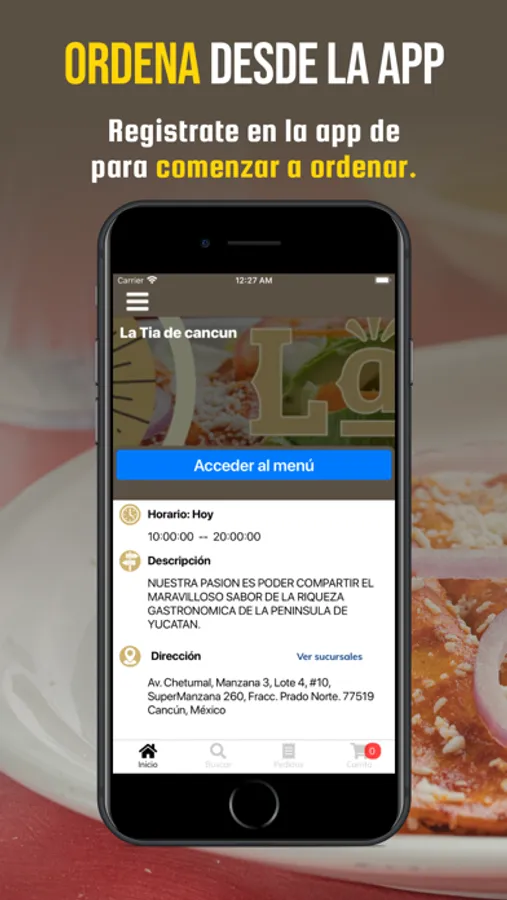 Utilizando esta app podrás registrarte como usuario para poder previsualizar todo el menú que ofrecen y agregarlos a tu carrito para poder solicitarlos para que lleguen a tu casa o recoger desde el negocio