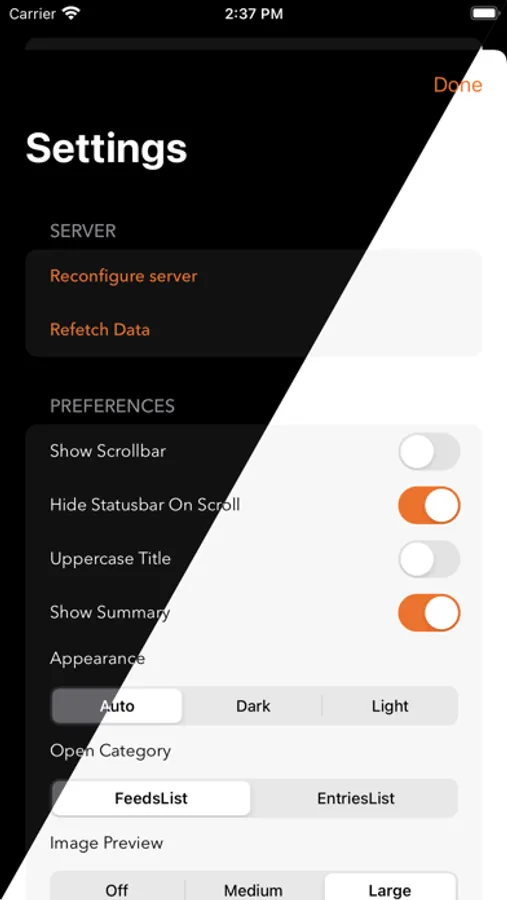 Reading is a third-party client designed to provide a basic experience with miniflux.