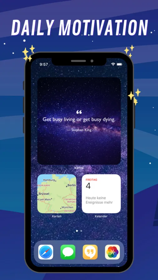 The Karma iOS 14 widget is the perfect way to start your day and get inspired by all the wonderful things you will achieve! Get it now on the App Store and never be without a dose of motivation again!
