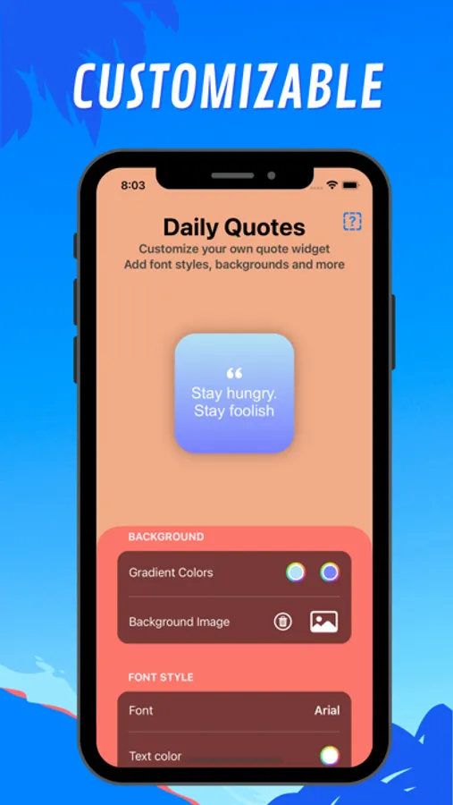 You can choose the background image, background color, font style, font color if you want to show the name of the author and how often you want the iOS 14 widget to update the quotes.