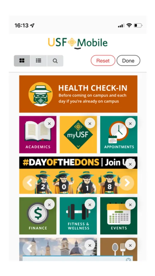 Welcome to the USFMobile app! Whether you’re a visitor to the University of San Francisco or a member of the community, choose your profile and then see content and events especially for you. Arrange your favorite resources on the home screen to keep them handy. Download the official USF mobile app now. Go Dons!