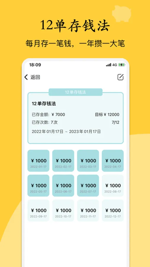 -12单存钱法: 一年分成12个月,每月存一个固定金额,坚持12个月。比如,每月存2000元,一年下来就可以存24000元。