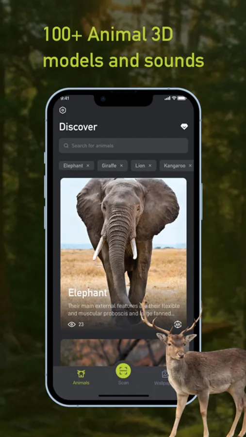 We provide lots of different animal images, sounds, like lion, elephant, camel, rhinoceros, giaffe.