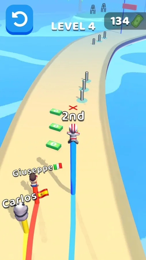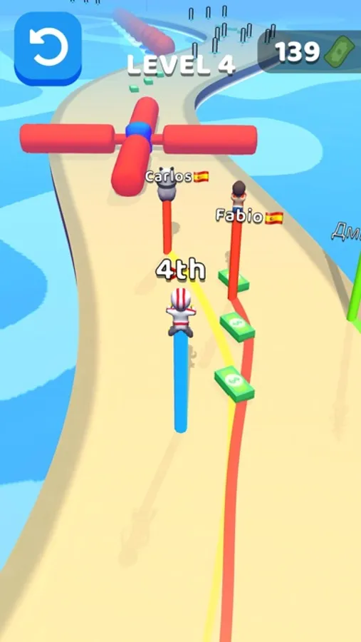 Hold your finger to move and release to fly! Stack your pole to get faster and jump farther! Reach to the finish line before your enemies! Be careful for obstacles on your way!