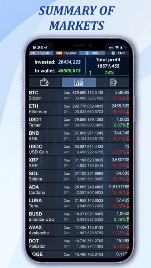 Keep track of your earnings quickly and conveniently with our APP. At a glance, you will see how your investments in cryptocurrencies evolve minute by minute.