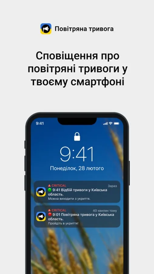 Це єдиний застосунок, що підтримує критичні сповіщення. Це означає, що звук тривоги буде завжди надходити з максимальним рівнем гучності смартфону. Для цього надайте усі відповідні дозволи застосунку після встановлення. Важливо! Критичні сповіщення можна вимкнути в будь-який момент в налаштуваннях застосунку.