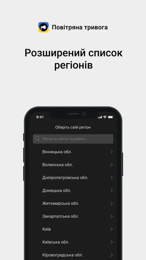 У застосунку доступні всі області України, а також додано можливість отримувати тривоги лише за обраним районом чи територіальною громадою.