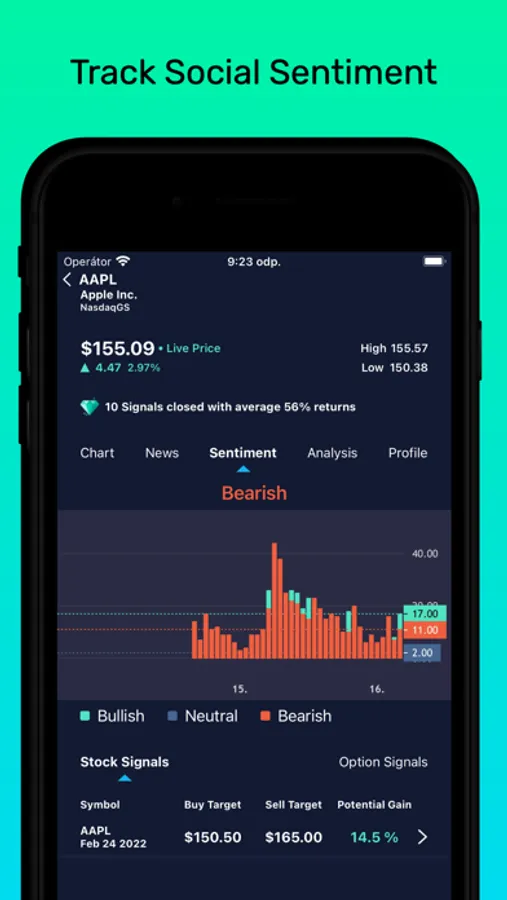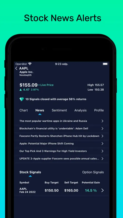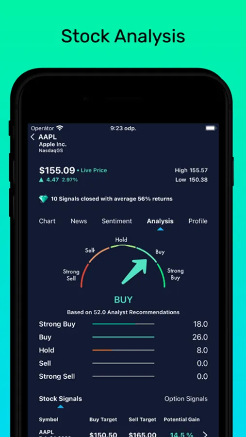 The app provides Stock Signals, Option Signals, Live Stock Prices, Free Stock Charts, Stock Analysis, Stock Sentiment, Stock Recommendations , Stock News & One of a kind, Unusual Options Live Flow