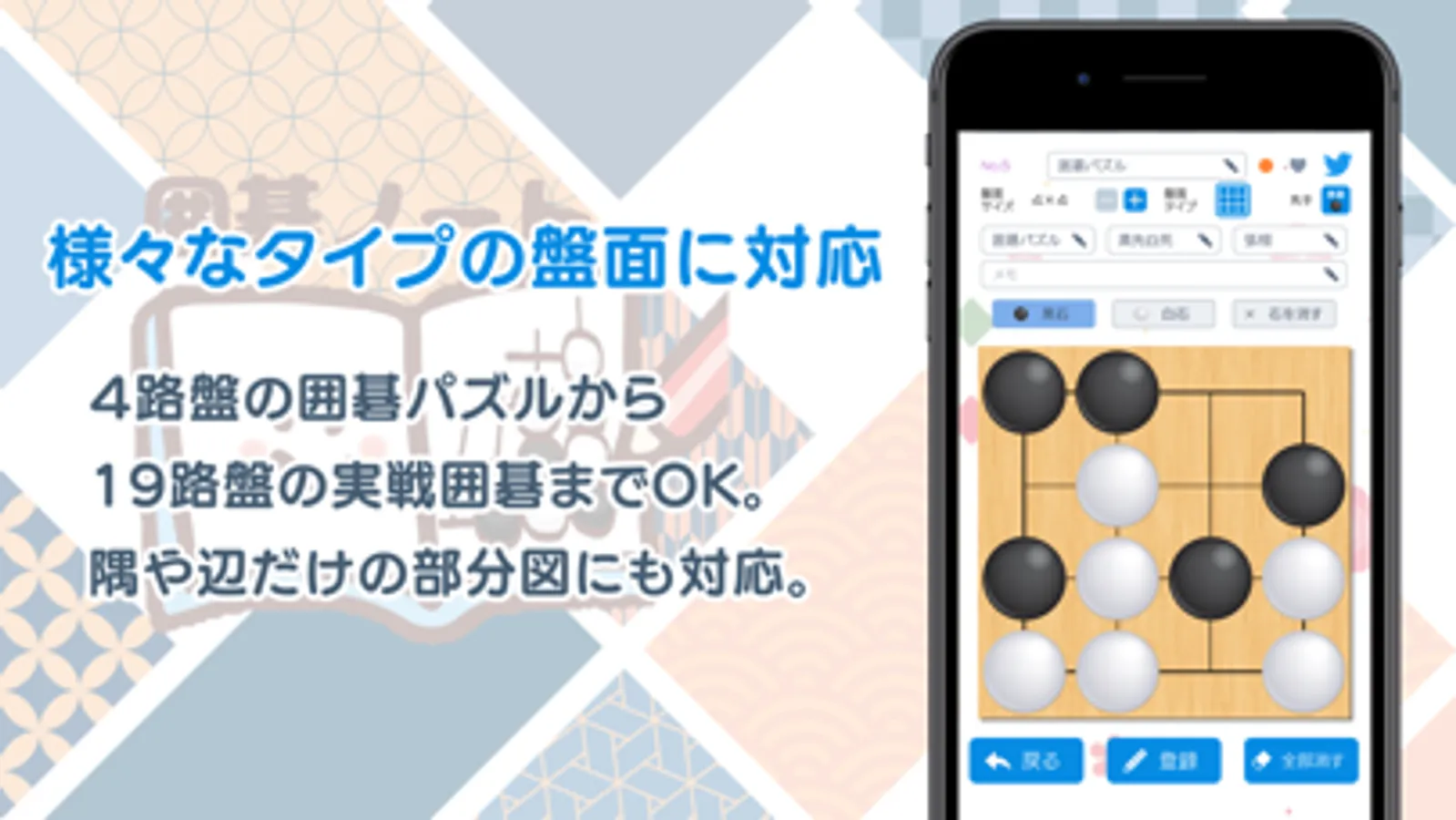 ・4路盤の囲碁パズルから19路盤の実戦囲碁のサイズまで対応しています