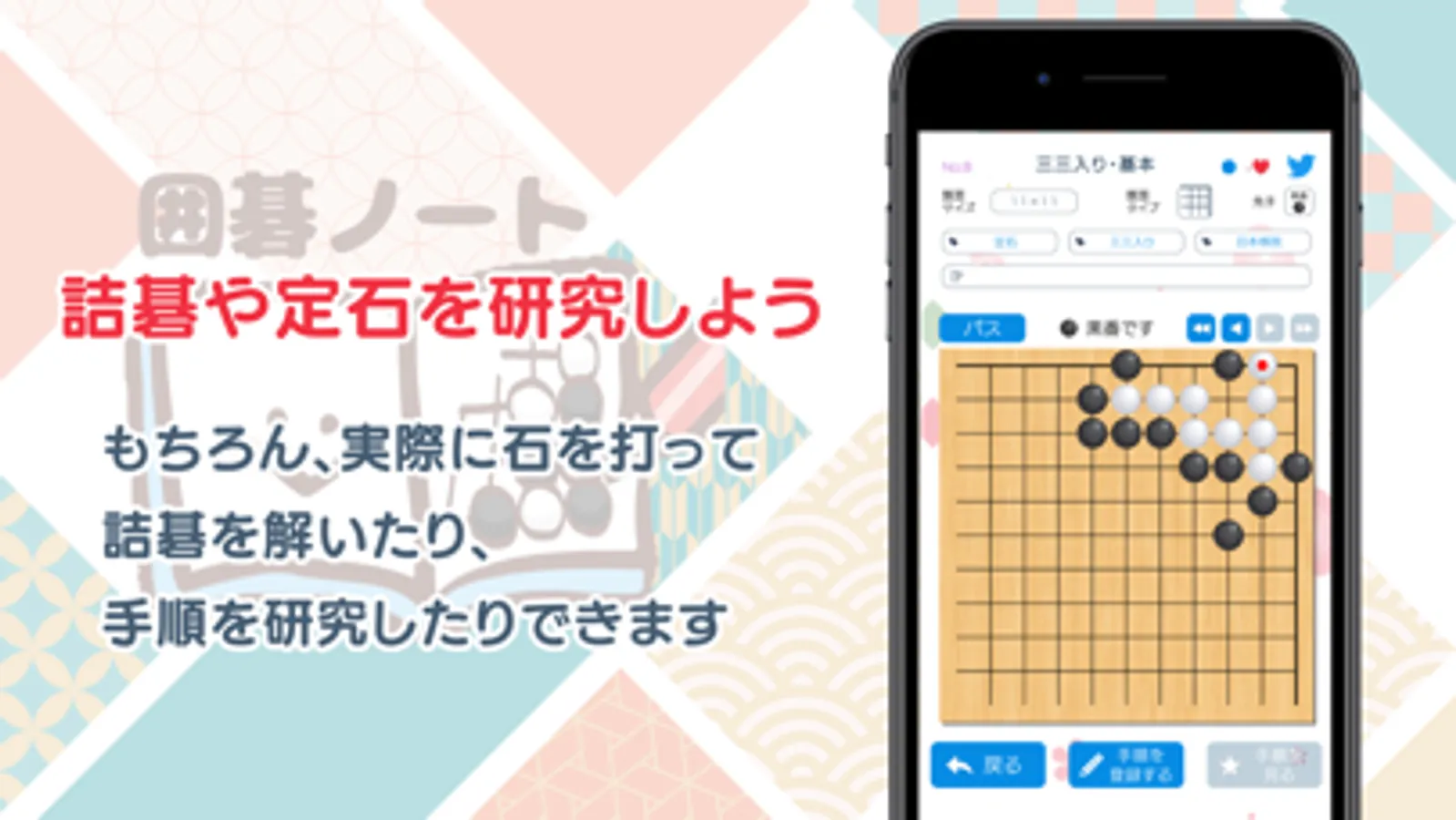 「囲碁ノート」は囲碁の詰碁問題や定石を自由に登録して、盤面および棋譜の管理や記録ができる無料アプリです。
