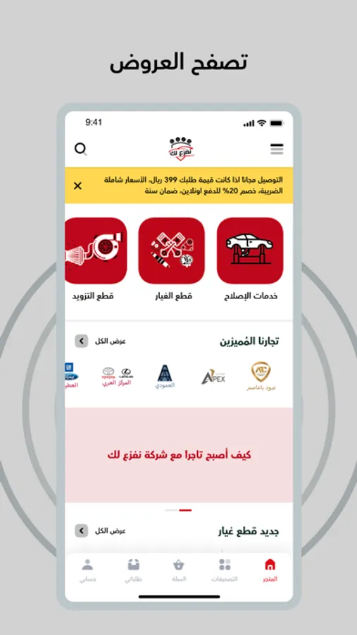 موقع وتطبيق نفزع لك ، مجموعة شباب سعوديين إتفقوا على تسهيل البحث عن جميع مايخص السيارات من قطع الغيار وقطع التزويد وقطع سيارات الدفع الرباعي الموجودة في جميع المحلات التجارية في المملكة العربية السعودية تحت سقف تطبيق واحد.