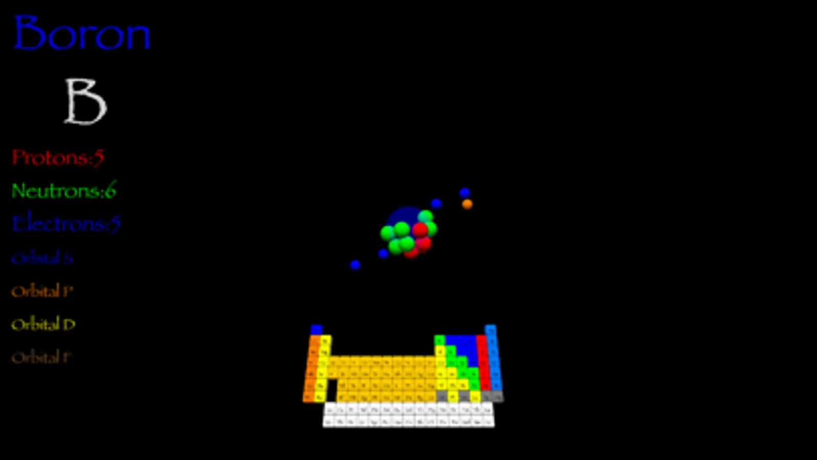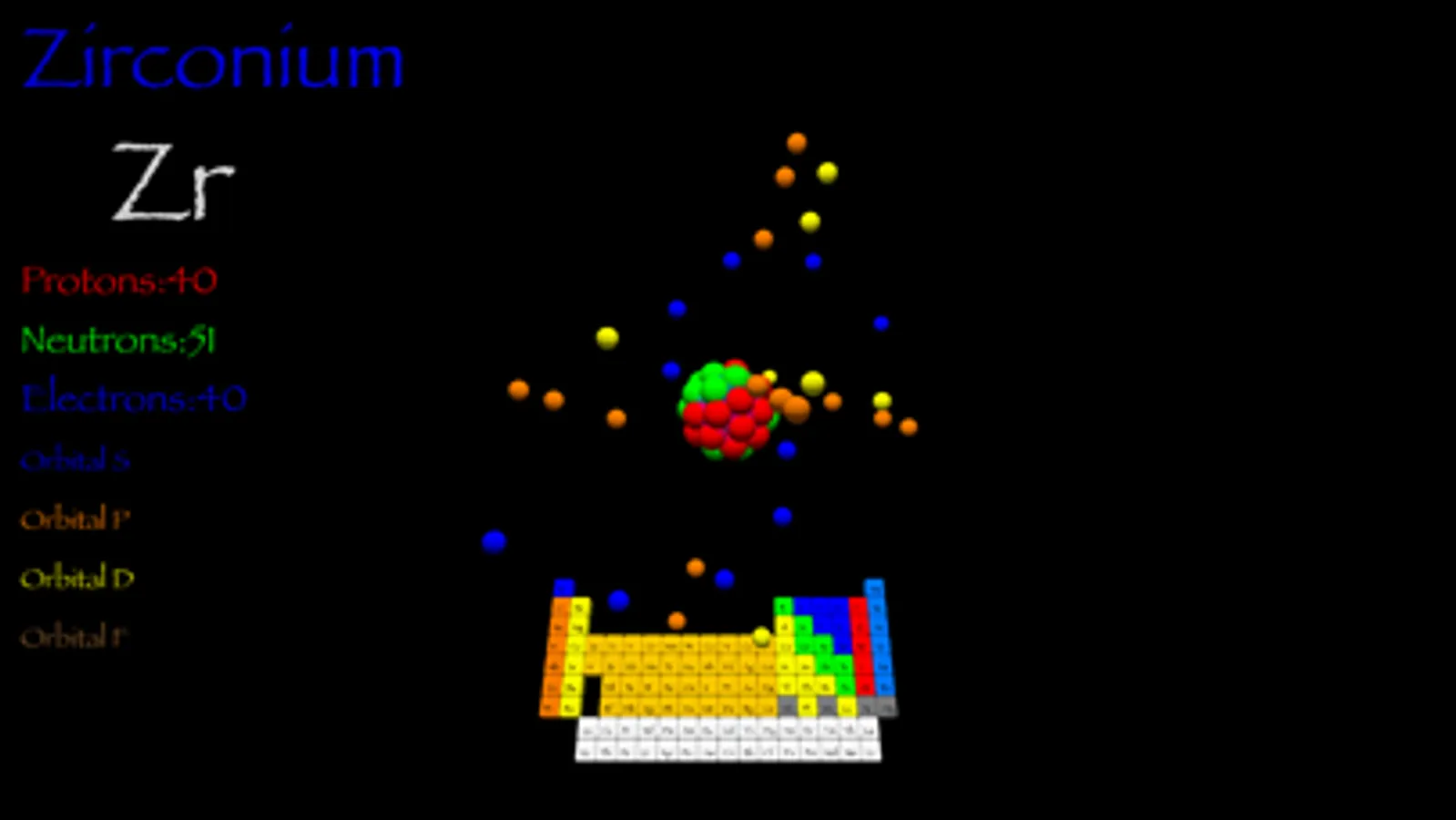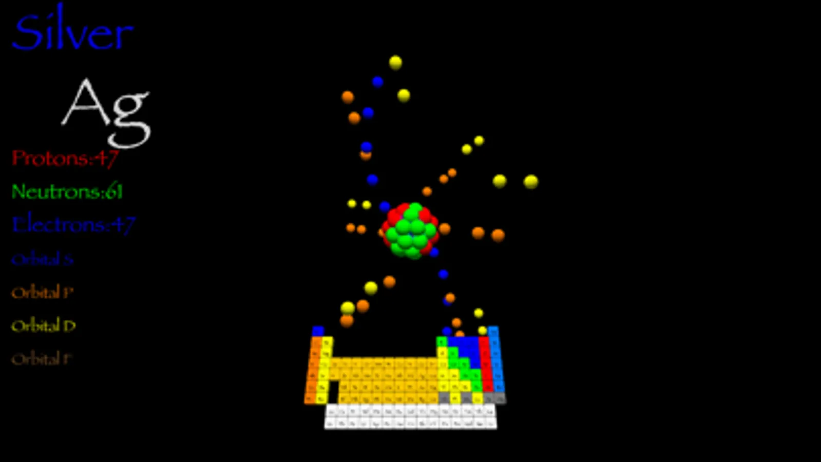 Nucleus contains Protons and Neutrons, around the nucleus move the electrons.