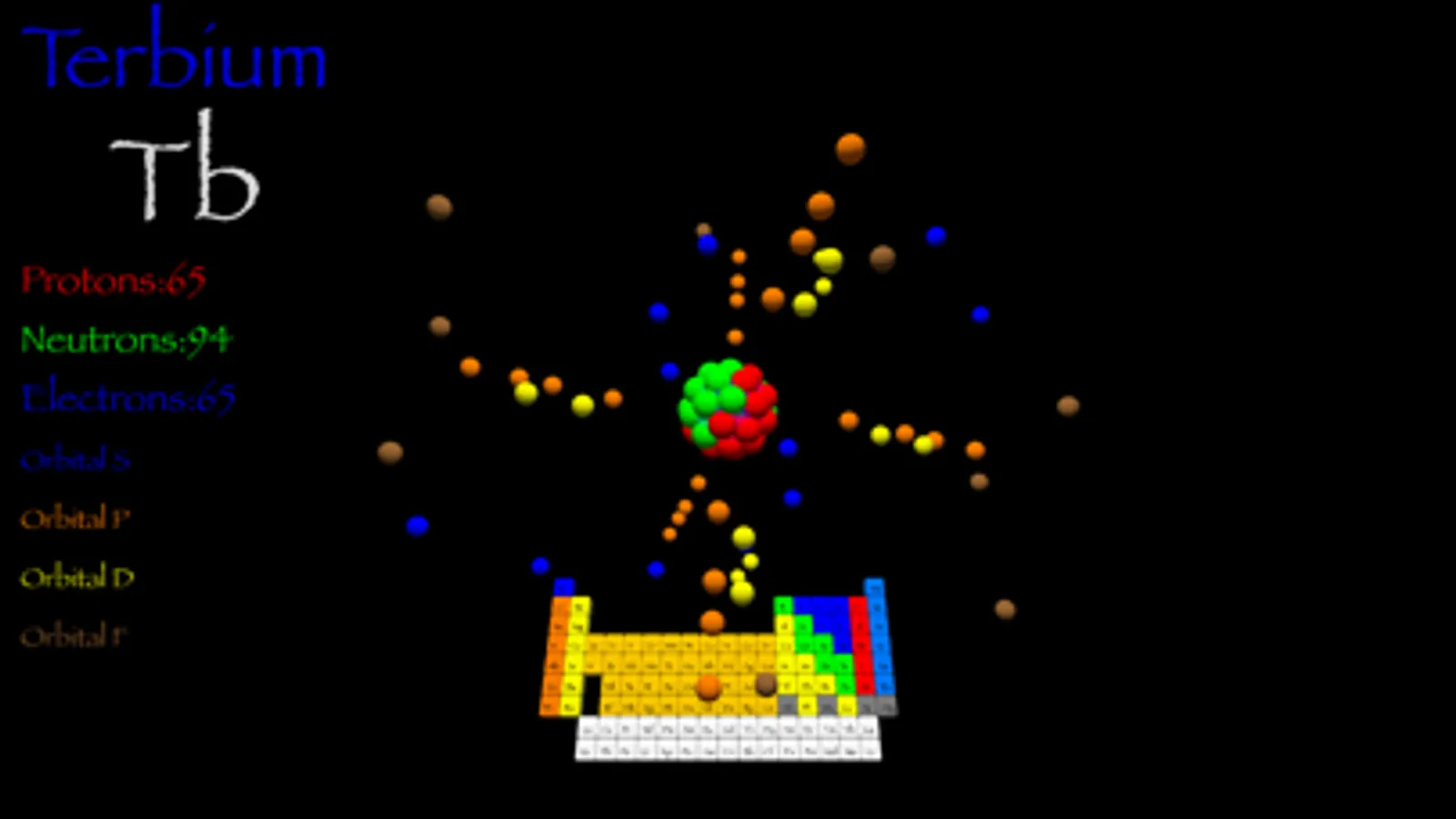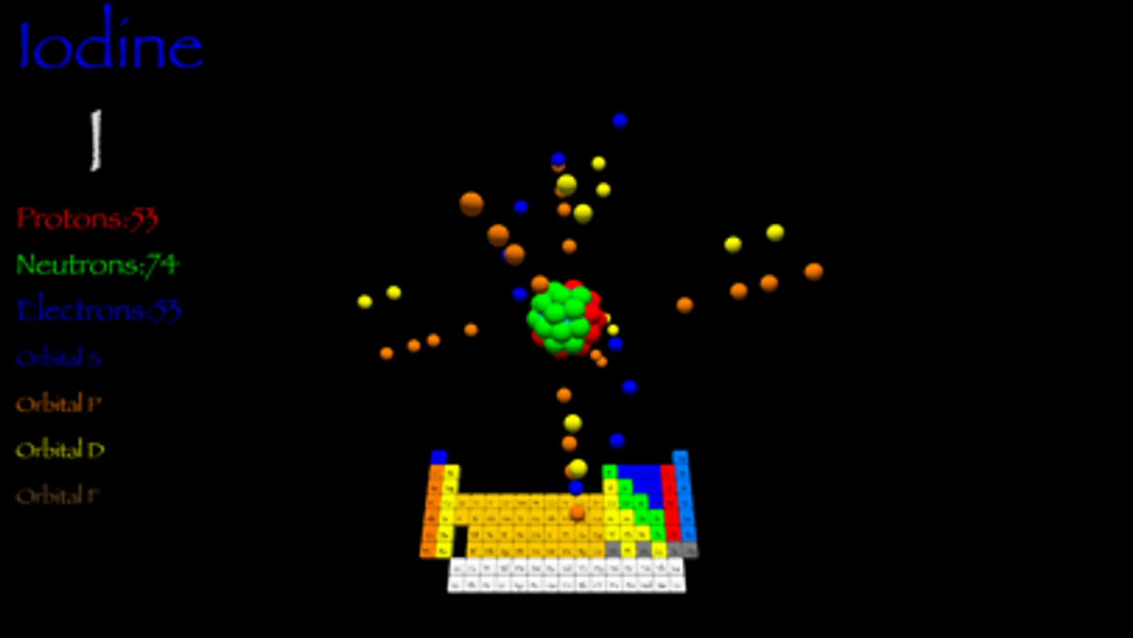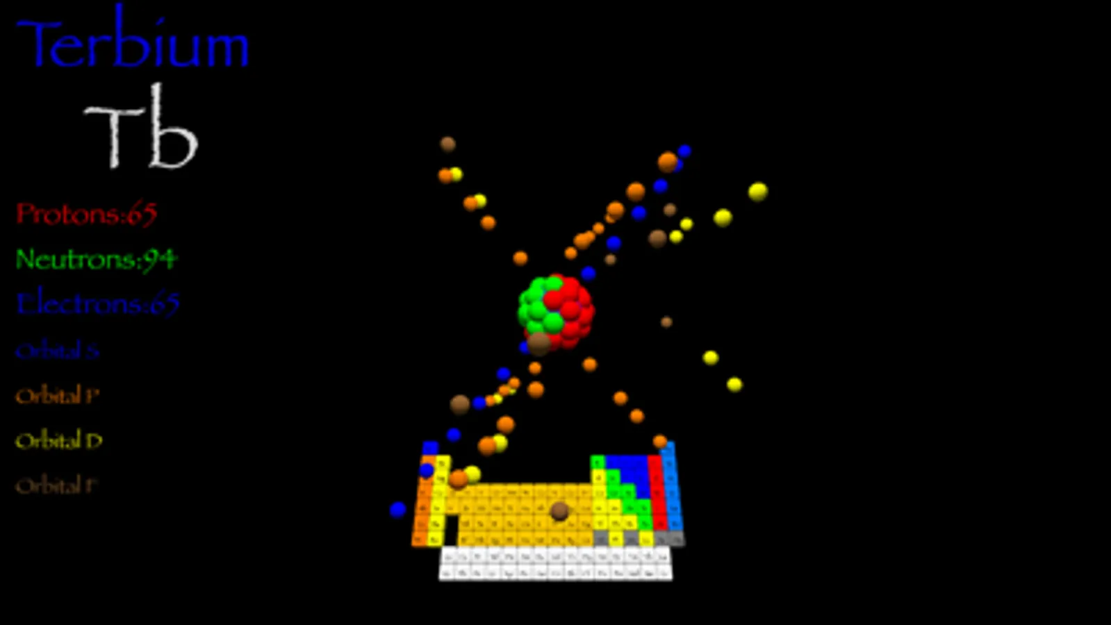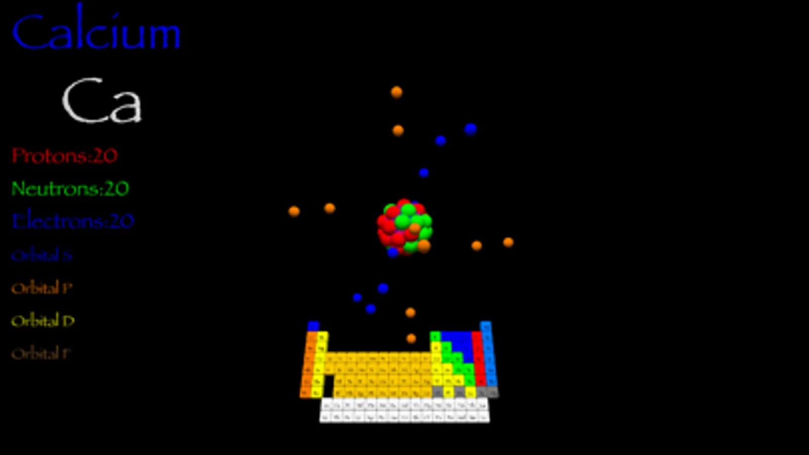 Nucleus contains Protons and Neutrons, around the nucleus move the electrons.