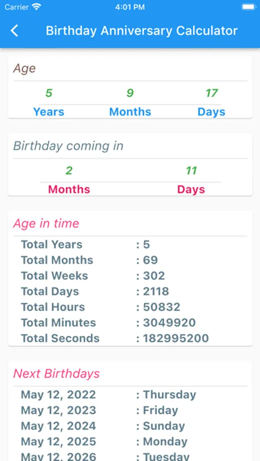 Find your age with this calculator, enter your birth date and time to find exact age in years, months , days etc. See on which weekdays your upcoming birthdays would be.