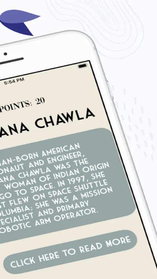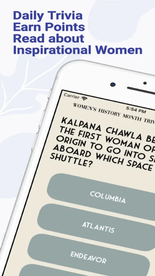 Each day, a trivia question is shown. If you correctly answer the question, you earn points! The app gives a brief synopsis of the woman of the day and provides a link to read and learn more about her story.