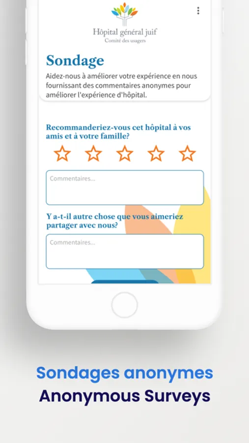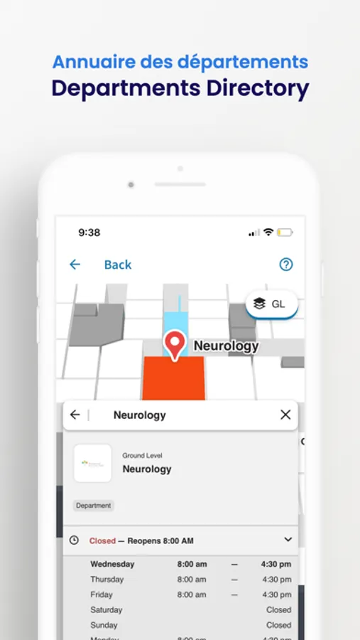 L'application Guide des usagers de l'HGJ a été créée par le Comité des usagers de l'HGJ pour les patients, le personnel et les visiteurs de l'Hôpital général juif. Cette nouvelle application vous permet d'accéder rapidement à l'itinéraire le plus rapide dans l'hôpital pour chaque destination. Elle permettra également de visualiser certaines informations plus facilement et plus rapidement, sans avoir besoin d'être à l'hôpital.