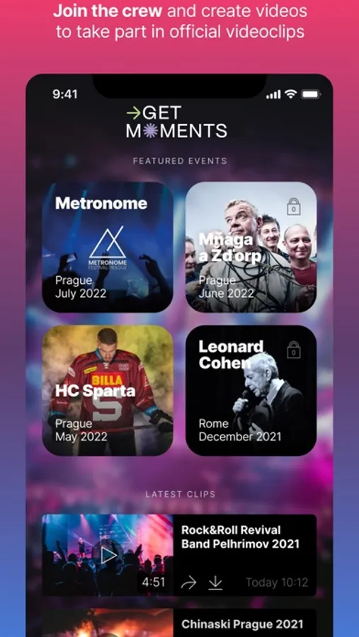 Concert or sports event? With Get Moments, you, your friends and other participants will become cameramen, directors or reporters and get your own, tailor-made after movie created from your and other participants' shots.