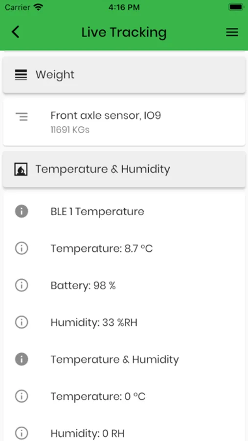 The app lets you quickly view & track your fleet, display warehouses' temperature & humidity readings, track your vehicles & get up-to-date sensor output.