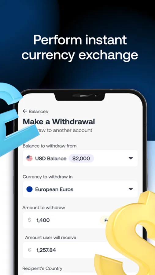Spend less on transaction fees for foreign transactions and enjoy instant currency exchange twenty-four hours a day, seven days a week. There’s no longer any need to jump from app to app. Say goodbye to long bank queues and disappointments.