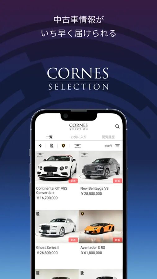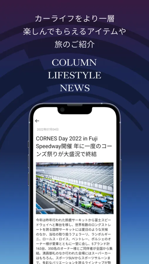 フェラーリ、ランボルギーニ、ロールス・ロイス、ベントレ ーの4ブランドを対象とした新着情報や、いつものカーライフをより一層楽しんでもらえるアイテムや旅のご紹介など、