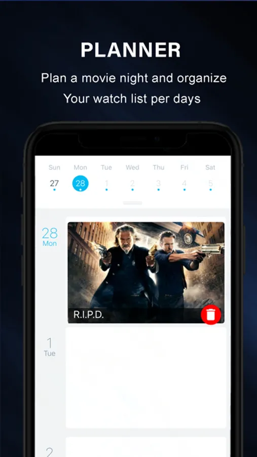 If you want to plan watching your new Movie or TV Show in a fixed day, Just go to our planner and add your movie to the agenda.