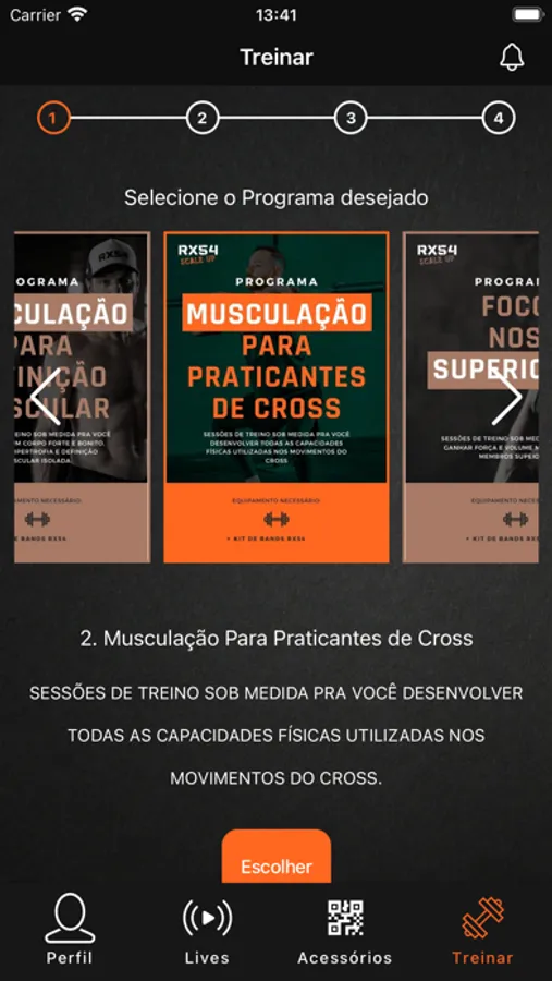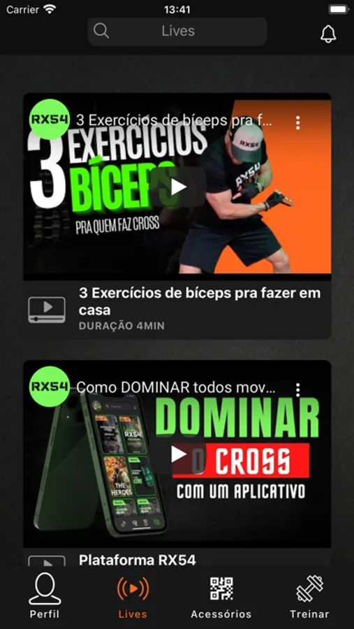 Além disso o aplicativo exibe de forma organizada diversas lives de treinos que vão tirar todas suas dúvidas e lhe ajudar com a execução correta dos exercícios.