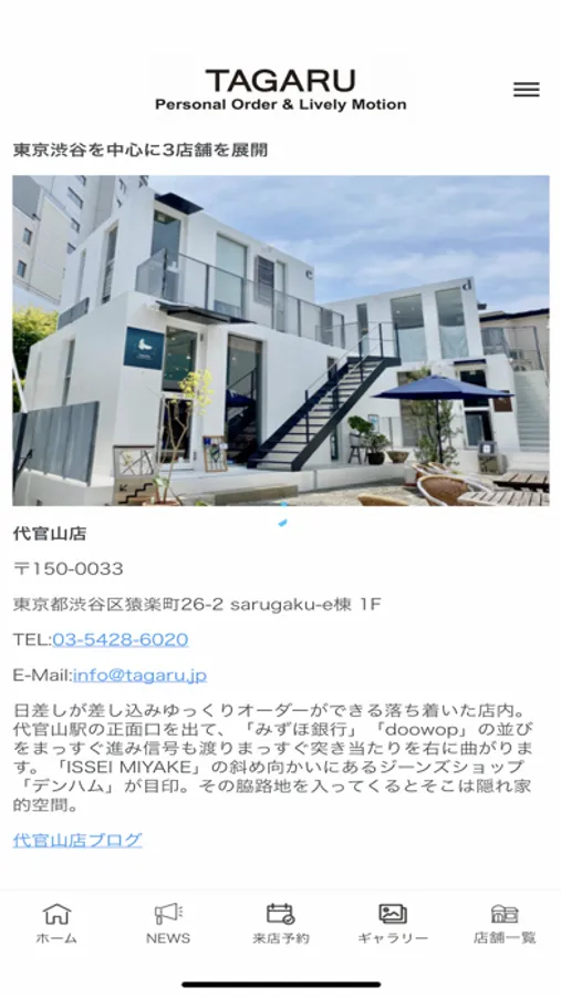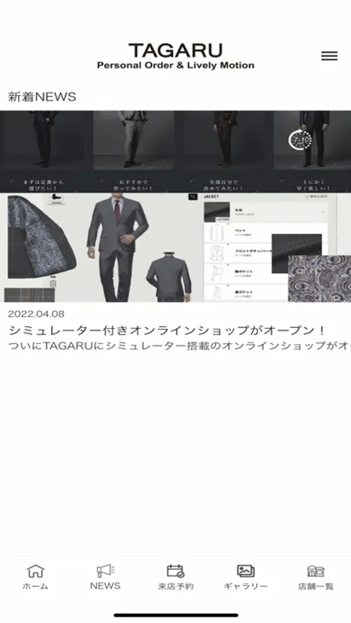 都内3店舗を展開するオーダーメイドスーツショップTAGARUの公式アプリ。