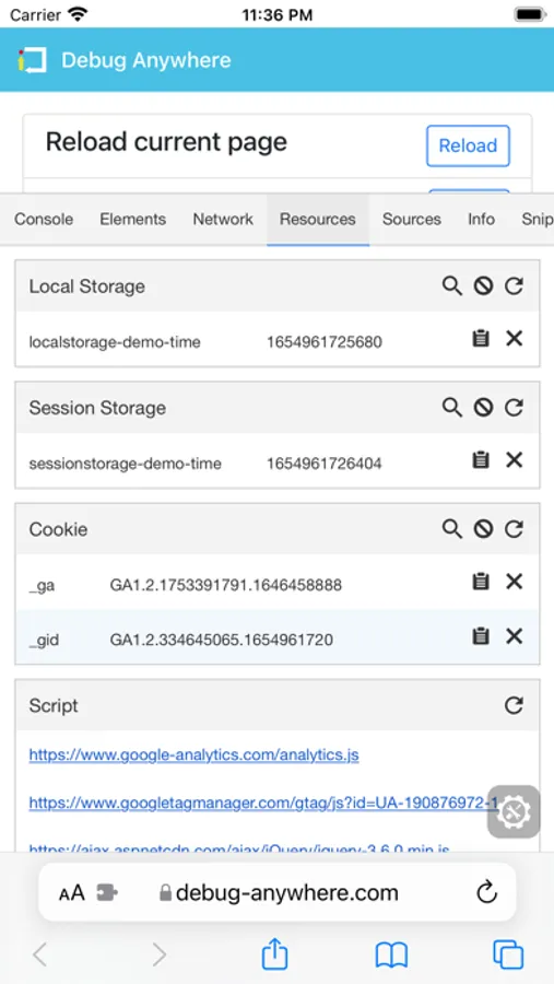 4,Resources - view localStorage, sessionStorage, cookies, scripts, css and images.
