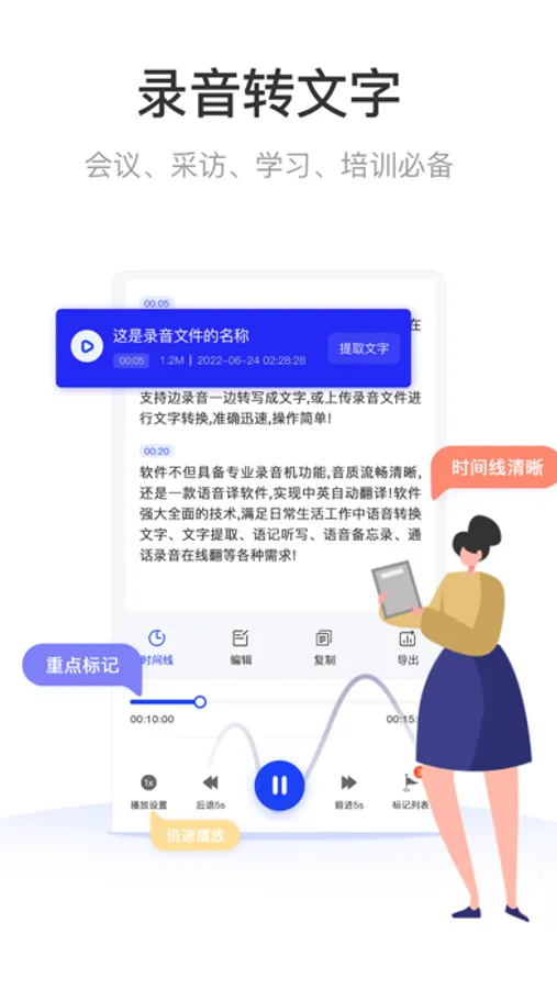 -支持学习记录、会议记录、采访记录,可随时随地记录语音笔记