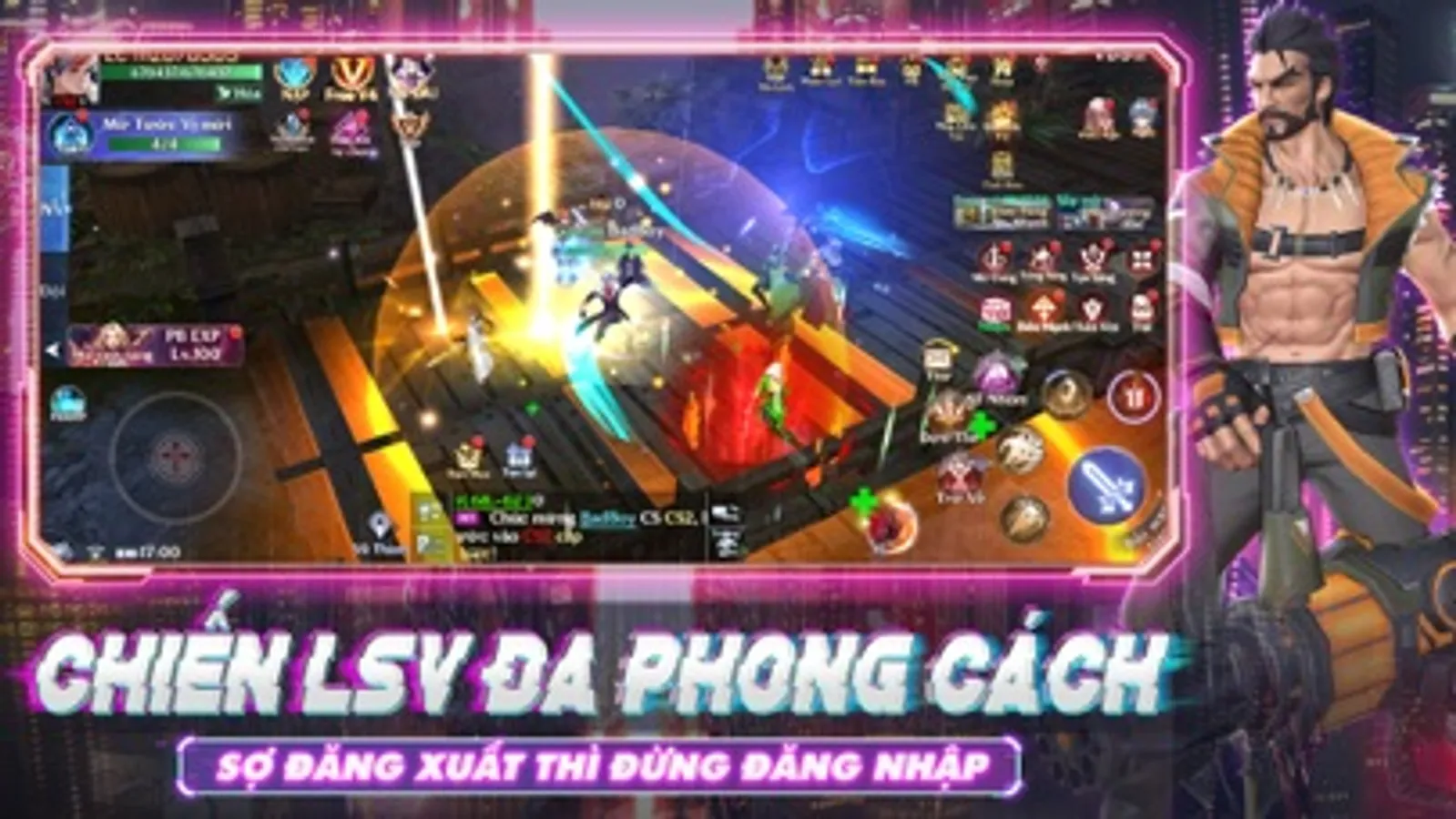 Chiến trường LSV - nơi người chơi thể hiện sức mạnh vô đối qua những màn combat đối thủ nảy lửa và kịch tính. Đặc biệt, việc tự do sử dụng và linh hoạt chuyển đổi vũ khí sẽ giúp người chơi hoàn toàn có thể tạo nên những màn chiến đấu theo phong cách riêng của mình, dồn đối thủ vào thế bí khó đoán trước. Không sợ đăng xuất ra khỏi server của mình ư? Vậy thì đăng nhập game thử xem!!