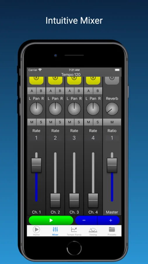 - The intuitive, DAW-like Mixer screen includes four independent channels that can each be assigned to a different rhythmic rate (subdivision), making it a snap to subdivide a beat, or generate polyrhythms.