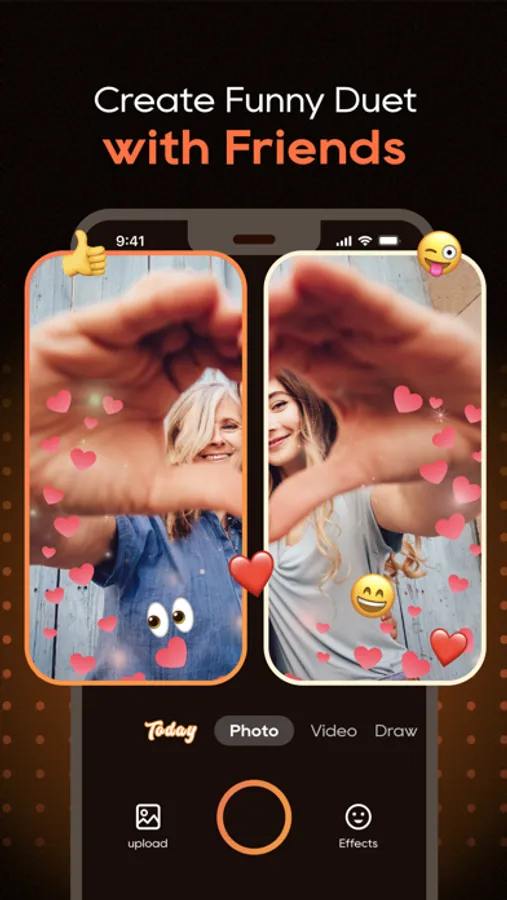 It's a creative format for interacting with friends, building on existing stories, and creating new and unique memory in SnapWidget. Take a pic or video and send it to your friends. Share life with your friends and duet together.