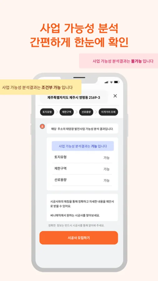 - 주소 입력 시 해당 부지의 태양광 발전 예상 수익•발전량 확인 가능