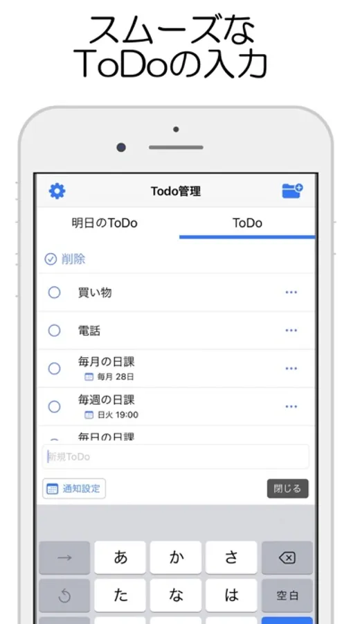 「ToDo」や「買い物」などタブに分けてタスク管理ができるアプリです。