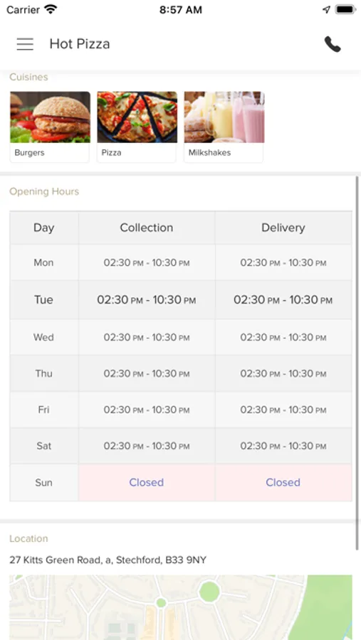 Order food online in Stechford! It's so easy to use, fast and convenient. Try our new, online app which contains our entire takeaway menu. The Hot Pizza is located in Stechford.