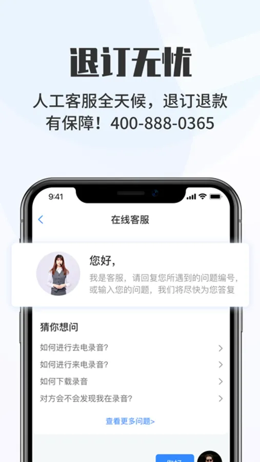 使用安心电话录音即表示您同意我们的隐私政策和使用条款: