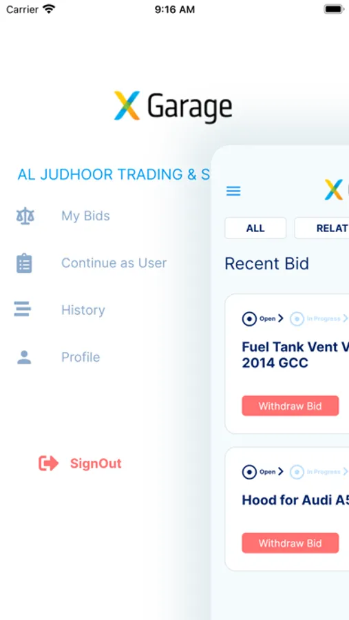 X Garage serves as a platform to connect the customer with multiple Spare Parts suppliers. Theregistered supplier will able to see the customer’s request and submit a bid. The customer would benotified with all the bids and can select, approve the best offer considering price, quality, location and availability.