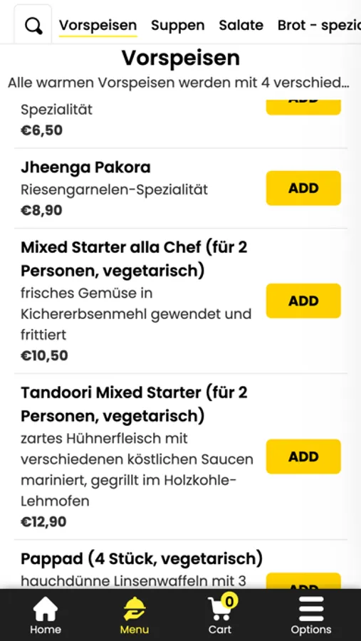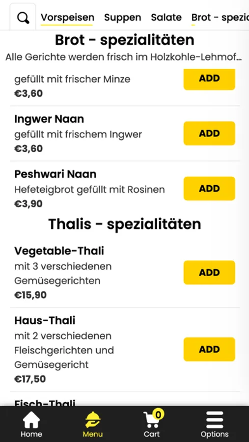 - Durchsuchen Sie die Speisekarte des Restaurants und sehen Sie sich alle anpassbaren Optionen im Voraus an