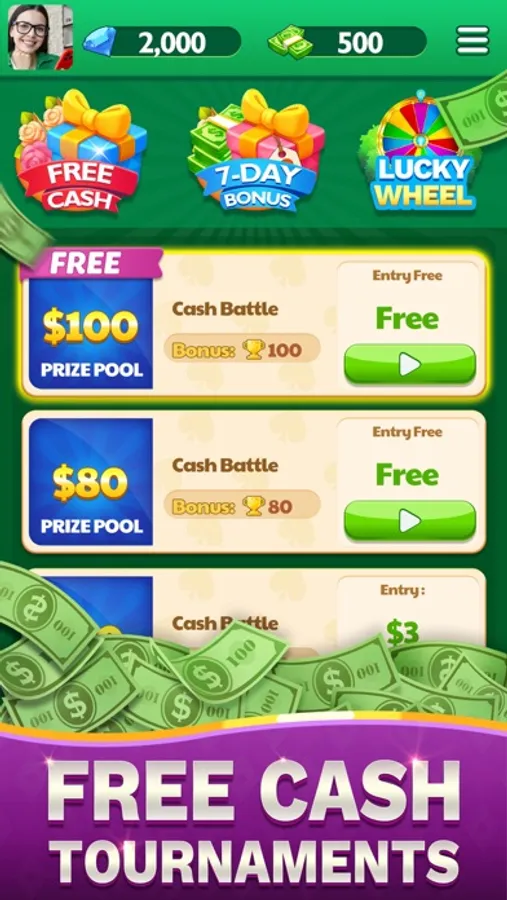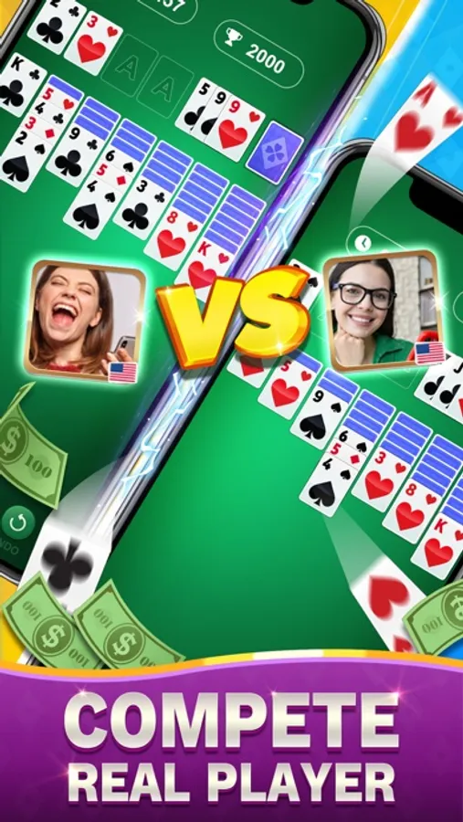 Let’s start playing this Real Cash Solitaire FOR FREE! The classic card game combined with pvp match makes this game even more fascinating. You can have a fair skill contest with players from all over the world anytime, anywhere!