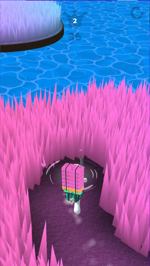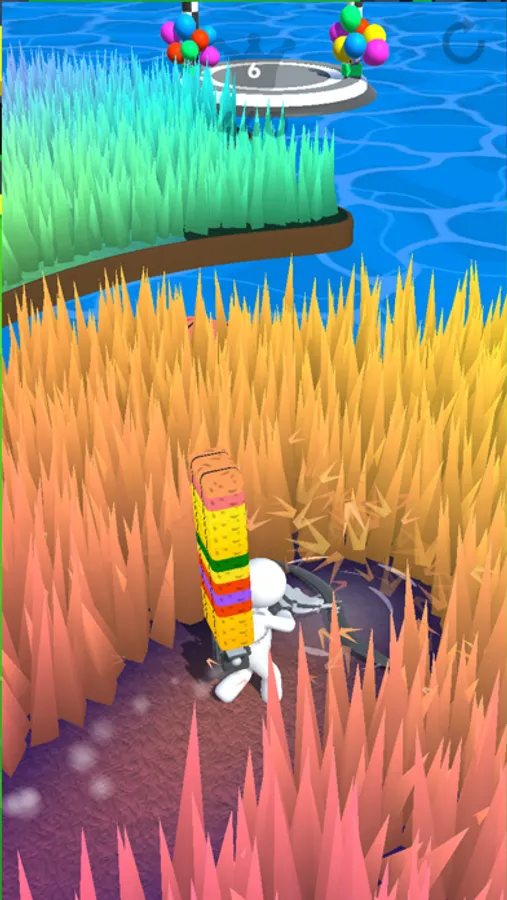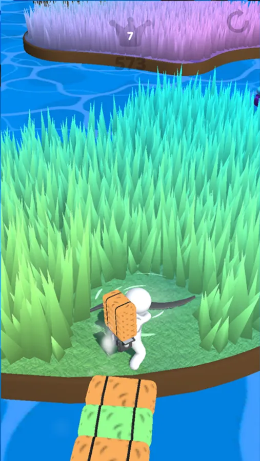 Cut the grass and make the pile a way to cut other areas of the island, feel the satisfying sensation of cutting colorful grass.