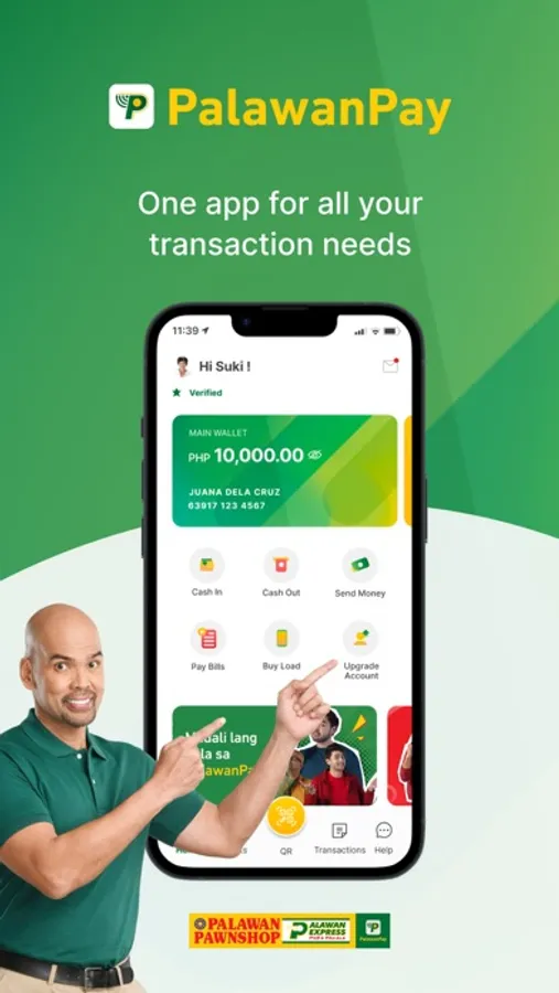 Ito na ang inaabangan mo, suki! Ang PalawanPay ay isang mobile wallet na handog ng Palawan Pawnshop Pera Padala Group. Sa PalawanPay, pwede ka magCash-In, Cash Out, Pera Padala, tumanggap ng pera, bumili ng load, magbayad ng bills at magbayad gamit ang QR code anytime at anywhere.