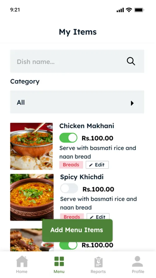 Menu and item management - Home chef partners can add, edit, and make your items unavailable at their convenience.